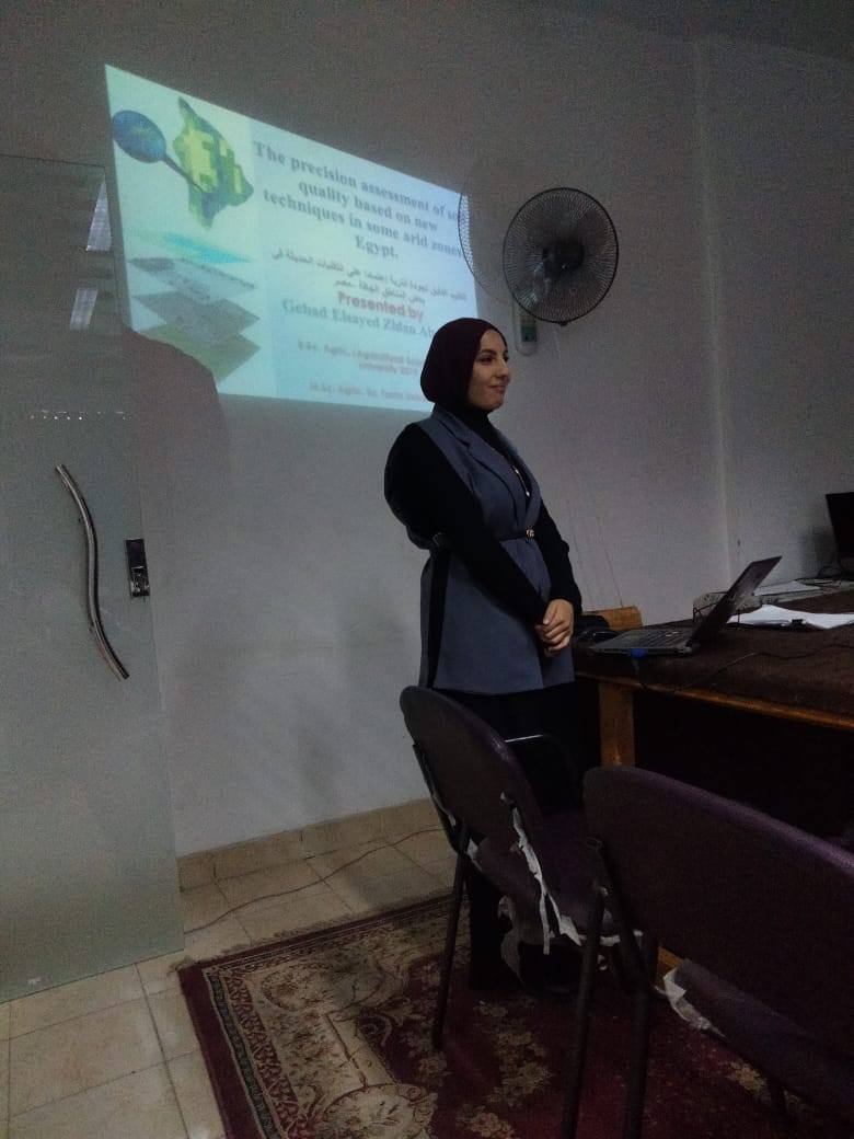 عقد صباح يوم الاربعاء الموافق ٣ ديسمبر ٢٠٢٥ الامتحان التأهيلي الشفهي للباحثه/ جهاد السيد زيدان ابو صفيه _ المسجل لدرجة دكتوراه الفلسفة في العلوم الزراعيه ( علوم الاراضي ) .